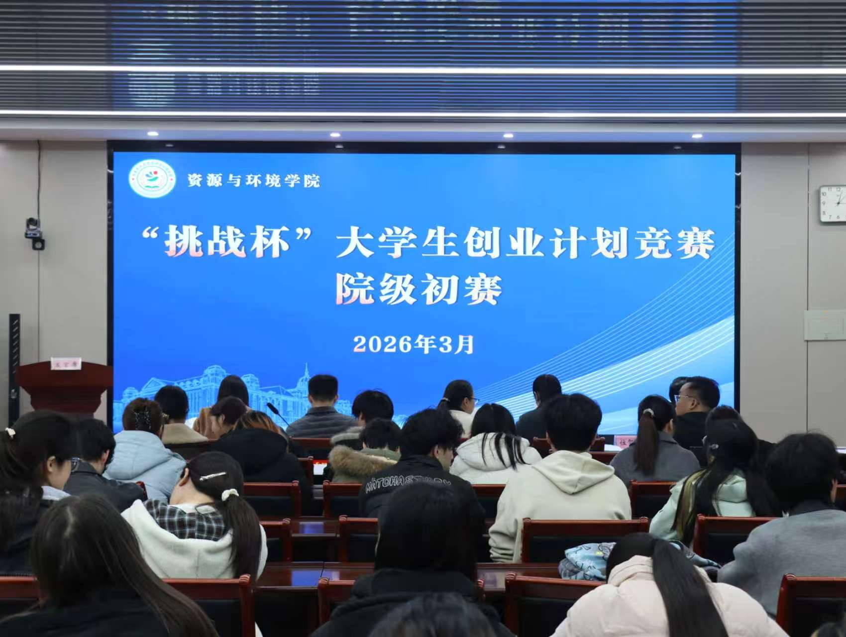 2026年“挑战杯”院级选拔赛在力行楼338会议室顺利举行。李慧、吴用、位贺杰、王竞侦、李芳五位老师受邀担任本次比赛评委。
